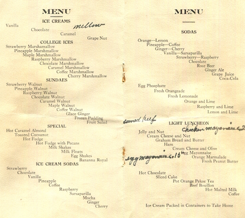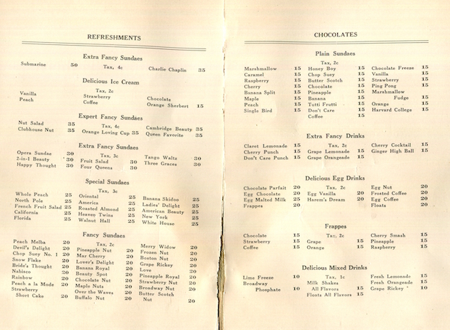 USA Massachusetts Cambridge Menu Restaurant Gomatos Brothers Chocolate ice Cream 1921 Inside
