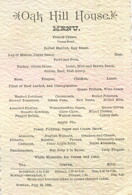 USA Massachusetts Cambridge Menu Hotel Oak Hill House 1888