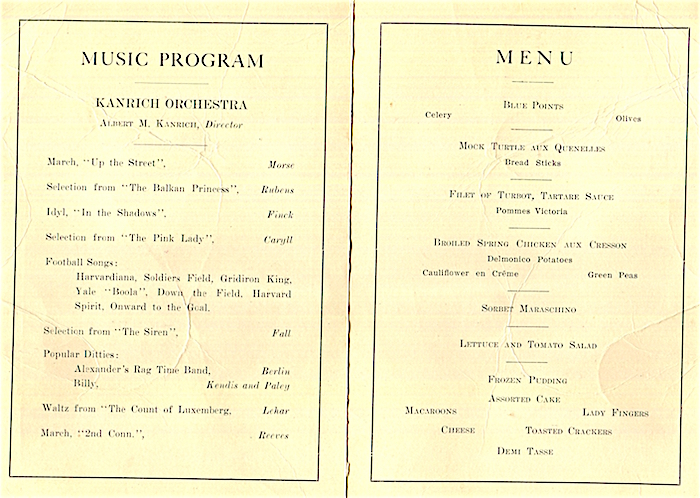 USA Massachusetts Cambridge Menu Memorial Hall Harvard Yale 1911 Front