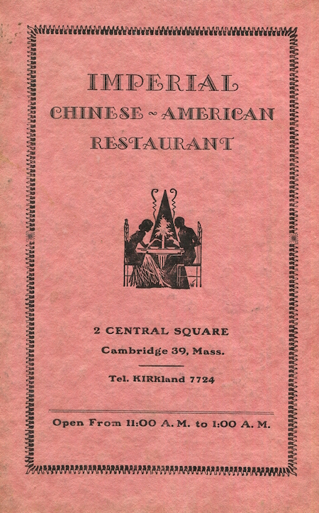 USA Massachusetts Cambridge Menu Restaurant Imperial Chinese American 1944 Inside 1