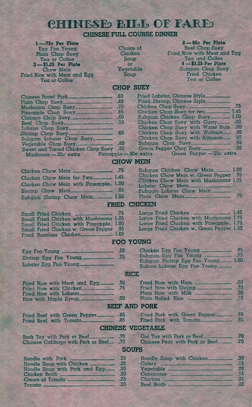 USA Massachusetts Cambridge Menu Restaurant Imperial Chinese American 1944 Inside 2