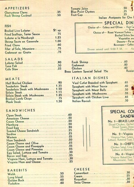 USA Connecticut Canton Menu Hotel Lantern Inn 1940 Inside 1