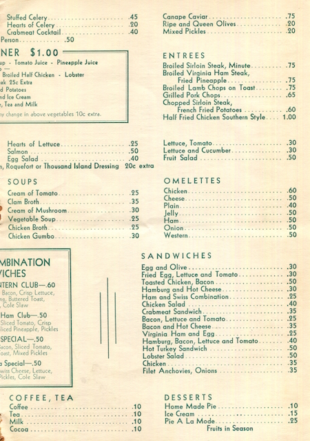 USA Connecticut Canton Menu Hotel Lantern Inn 1940 Inside 2
