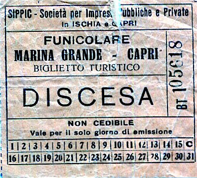 Italy Capri Ticket Funicular 1897