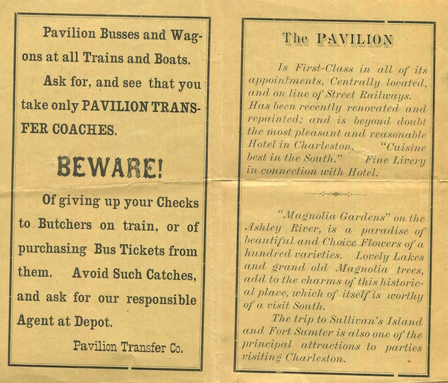USA South Carolina Charleston Brochure Hotel Pavilion 1870 Inside