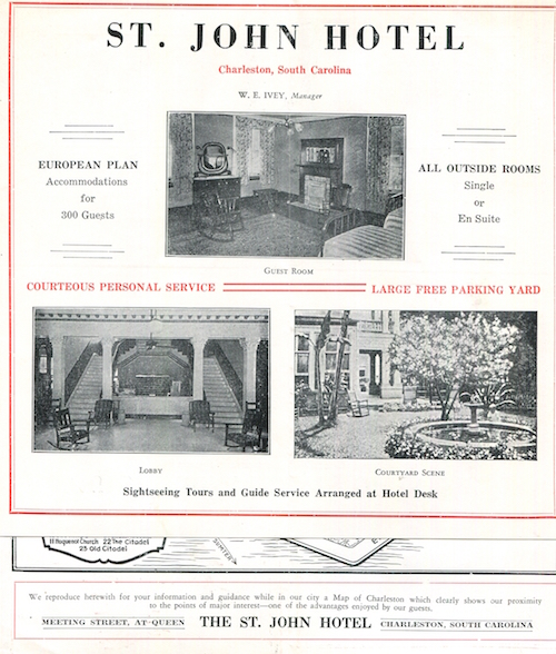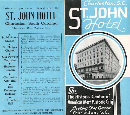 USA South Carolina Charleston Brochure Hotel St John 1926 Front