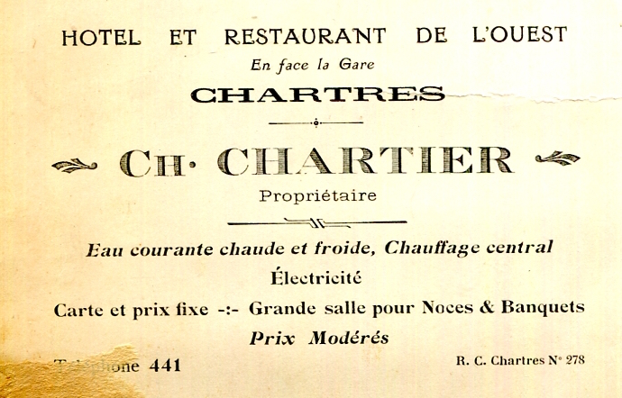 France Chartres Hotel Et Restaurant De L Ouest Business Card 1929