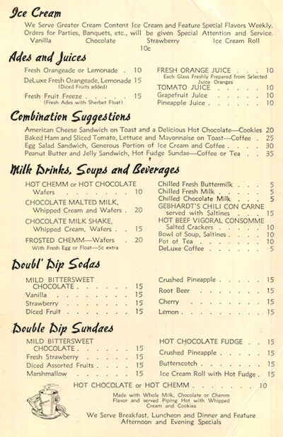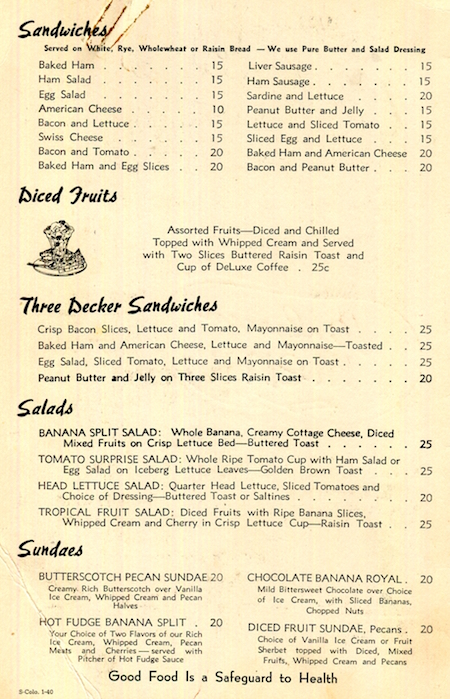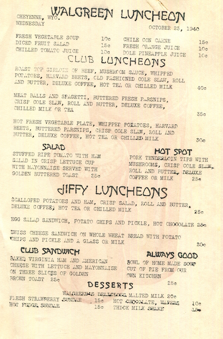 USA Wyoming Cheyenne Restaurant Walgreen Menu 1940 Inside 3