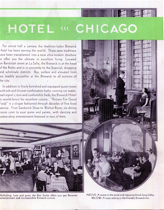 USA Illinois Chicago Brochure Hotel Bismarck 1932 Inside 1