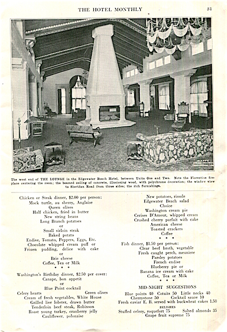 USA Illinois Chicago Brochure Hotel Edgewater Beach 1924 Inside 2