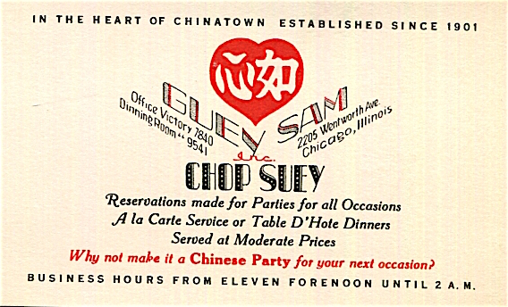 USA Illinois Chicago Business Card Restaurant Guey Sam 1938