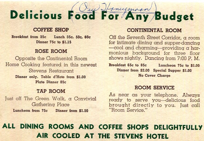 USA Illinois Chicago Leaflet Hotel The Stevens 1937