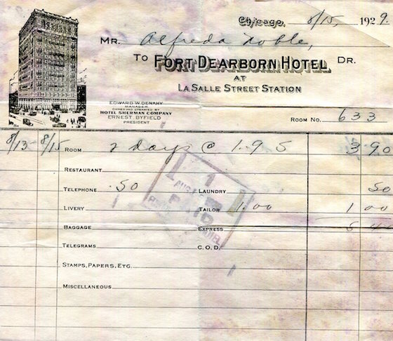 USA Illinois Chicago Receipt Hotel Fort Dearborn 1929