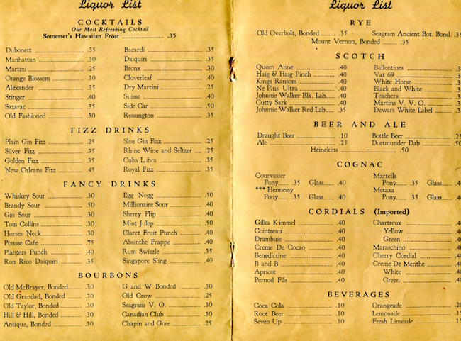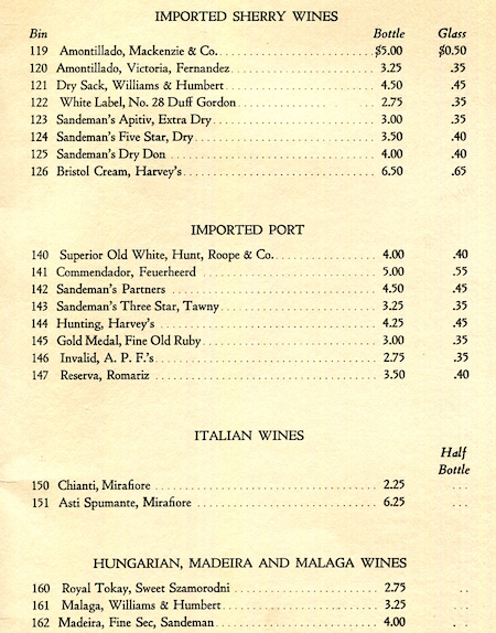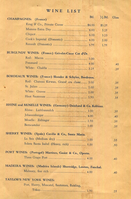 USA Illinois Chicago Wine Menu Hotel Somerset Lodge 1939 Inside 3