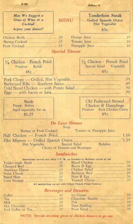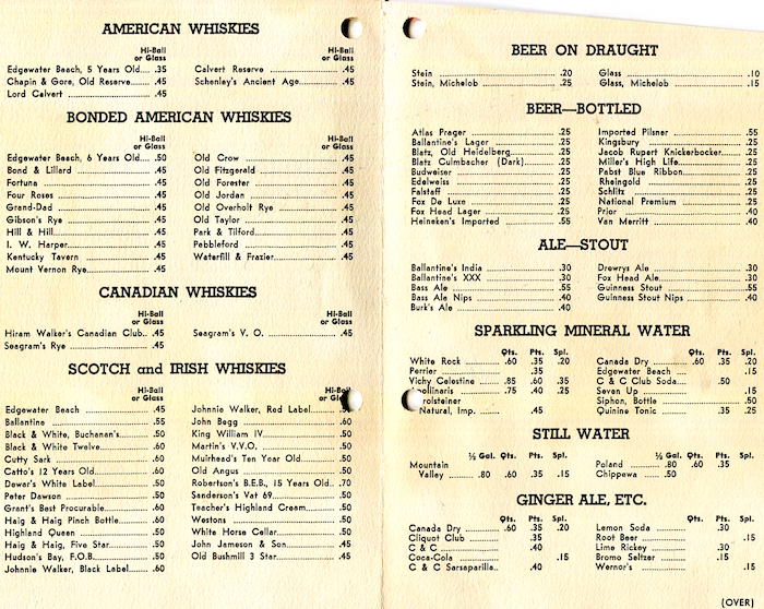 USA Illinois Chicago Wine Menu Hotel Edgewater Beach 1937 Inside 2