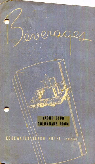 USA Illinois Chicago Wine Menu Night Club Edgewater Beach Hotel Yacht Club 1942 Front