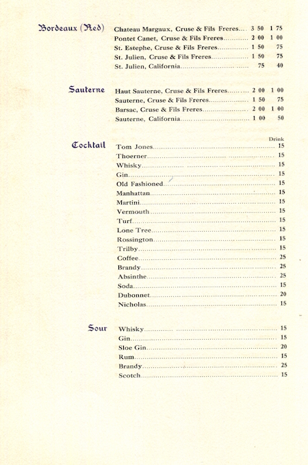 USA Illinois Chicago Wine Menu Restaurant The Tom Jones 1909 Inside