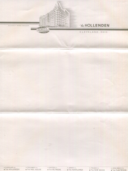 USA Ohio Cleveland Stationery Hotel Hollenden 1930