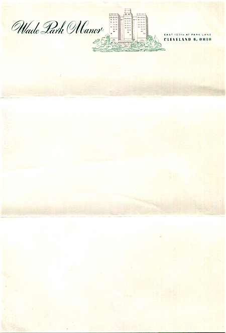 USA Ohio Cleveland Stationery Hotel Wade Park Manor 1930