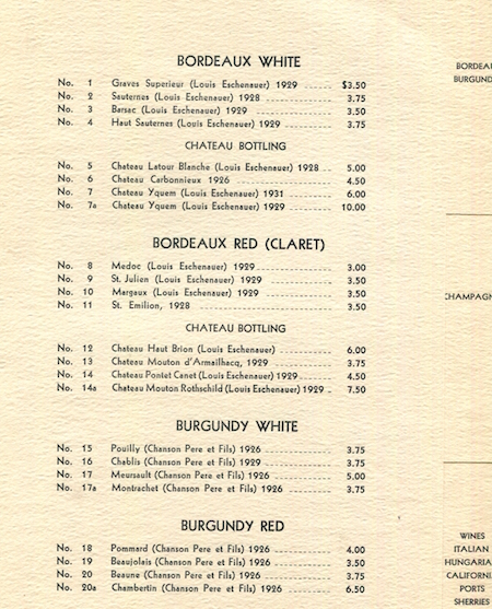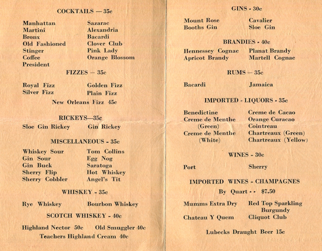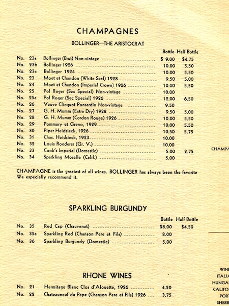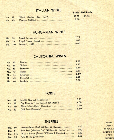 USA Ohio Cleveland Wine Menu Mayfair Casino Restaurant 1934 Inside 2