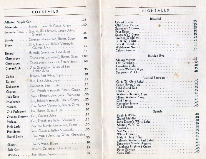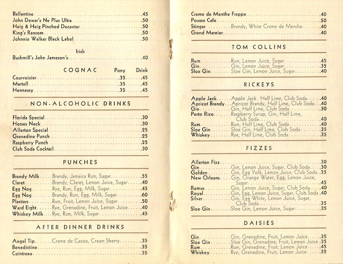 USA Ohio Cleveland Wine Menu Hotel Allerton 1934 Inside 2