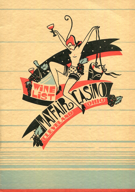 USA Ohio Cleveland Wine Menu Mayfair Casino Restaurant 1934 Front