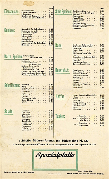 Germany Cologne Hotel Belgischer Hof Menu 1925 Back