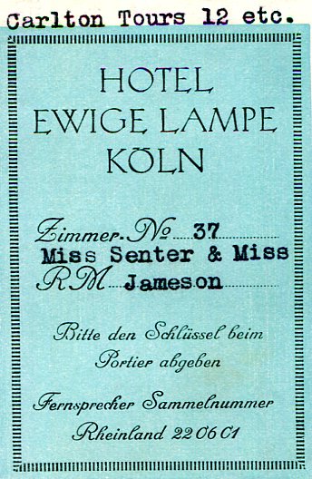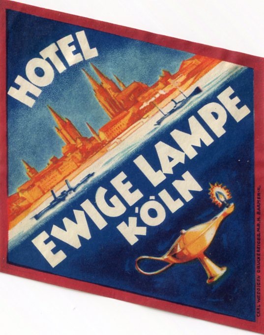 Germany Cologne Hotel Ewige Lampe Luggage Label 1931