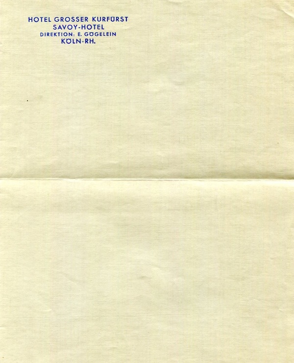 Germany Cologne Hotel Grosser Kurfürst Stationery 1937