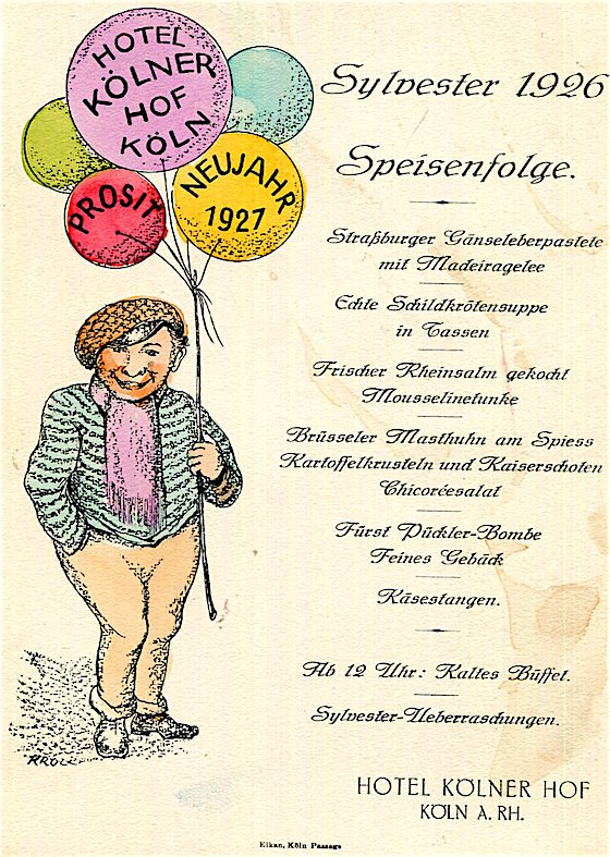 Germany Cologne Hotel Kölner Hof Menu NY Eve 1926