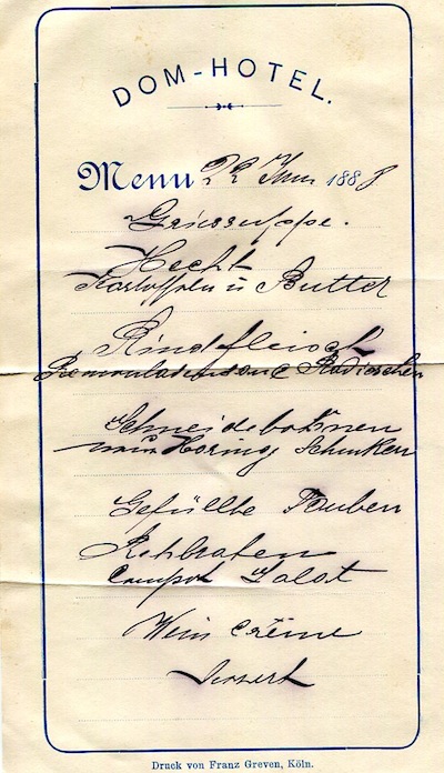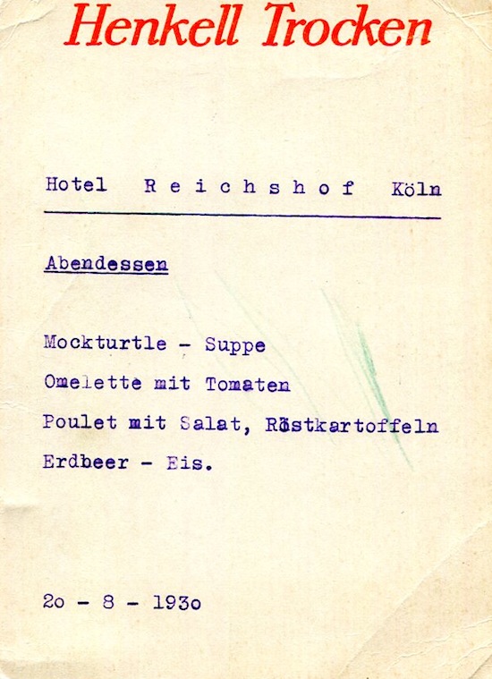 Germany Cologne Menu Hotel Reichshof 1930 Back
