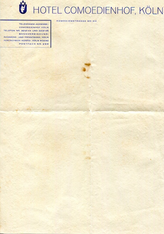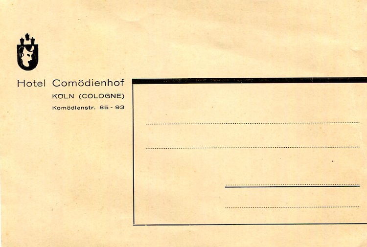 Germany Cologne Stationery Hotel Comödienhof 1931