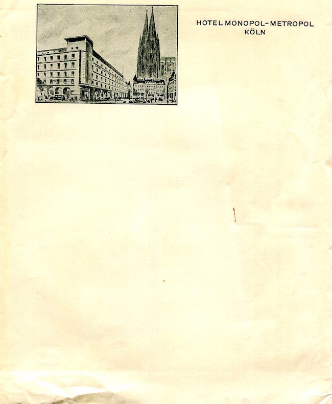 Germany Cologne Stationery Hotel Monopol-Metropol 1930