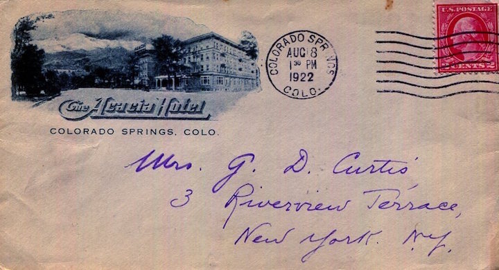 USA Colorado Colorado Springs Envelope Hotel Acacia 1922