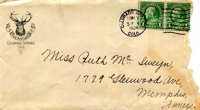 USA Colorado Colorado Springs Envelope Hotel Antlers 1924