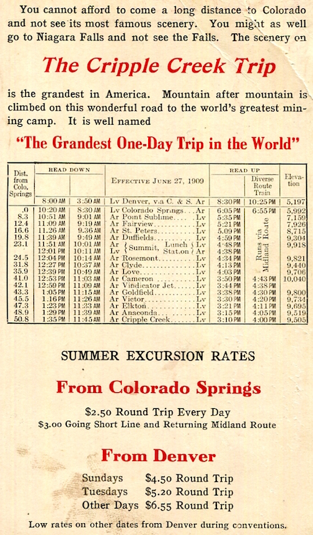 USA Colorado Colorado Springs Leaflet Cripple Creek Trip 1909 Back