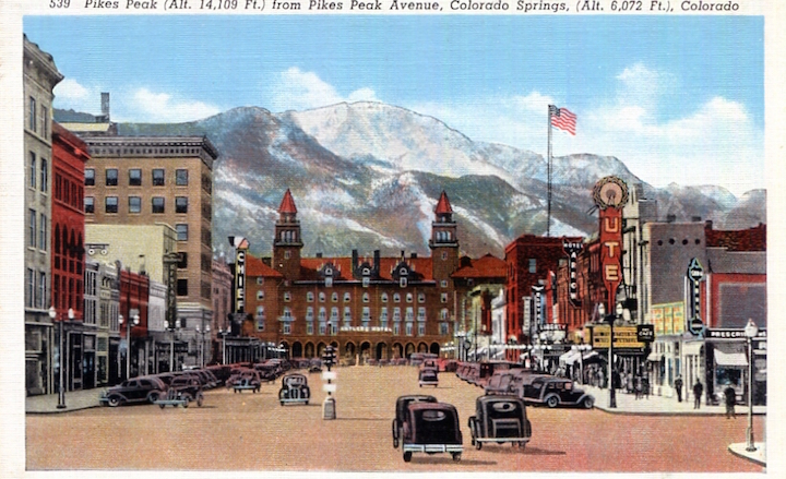 USA Colorado Colorado Springs Postcard Pikes Peaks Ave 1939