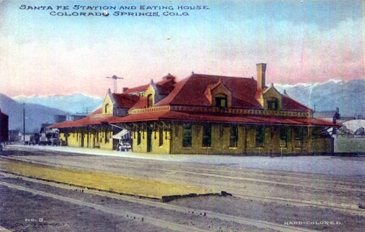 USA Colorado Colorado Springs Postcard Railroad Station 1920
