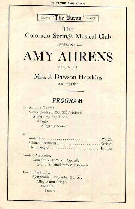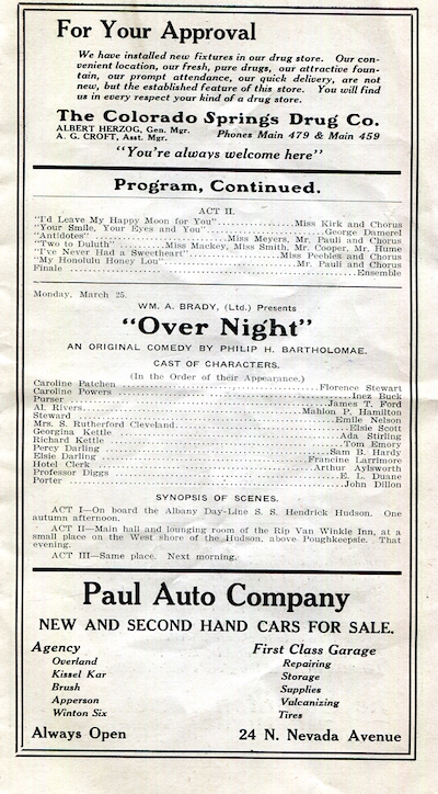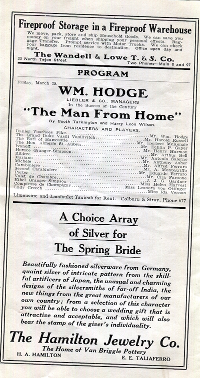 USA Colorado Colorado Springs Program The Burns 1922 Front