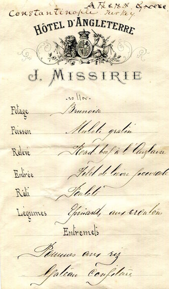 Turkey Constantinople Hotel D Angleterre Menu 1875