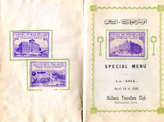 Turkey Constantinople Hotel M Tokatlian Menu 1926 Front