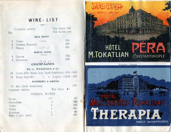 Turkey Constantinople Hotel M Tokatlian Menu 1926 Inside 1