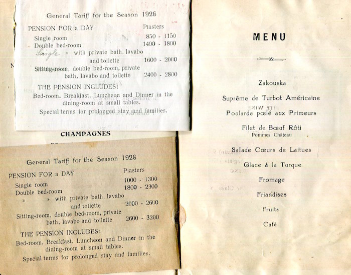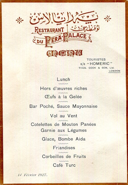 Turkey Constantinople Hotel Pera Palace Menu Orient Express 1927