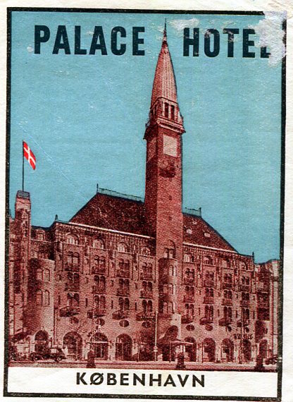 Denmark Copenhagen Palace Hotel Luggage Label 1938