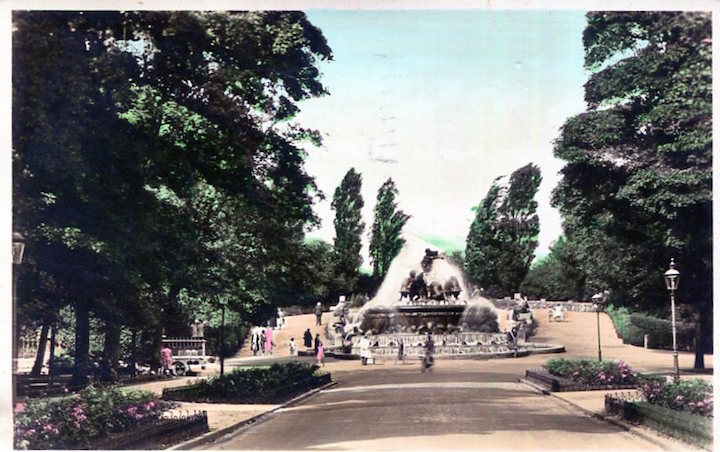 Denmark Copenhagen Postcard Geflon Fountain 1937