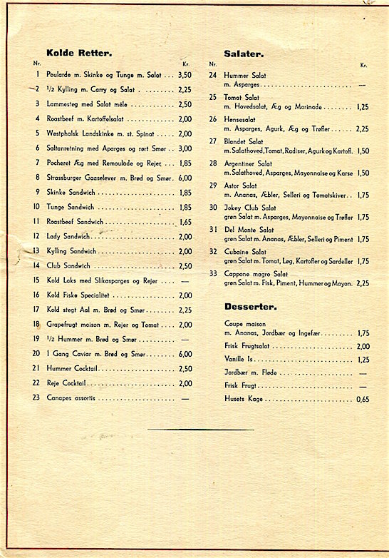 Denmark Copenhagen Restaurant Ambassadeur Menu 1937 Back