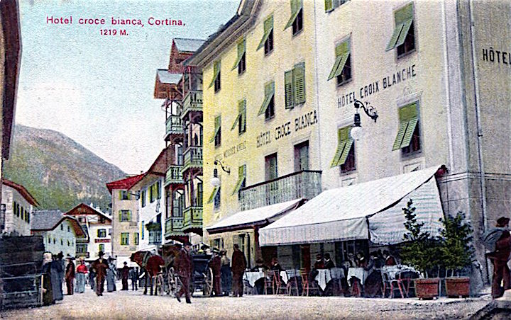 Italy Cortina Hotel Croce Bianca Postcard 1915
