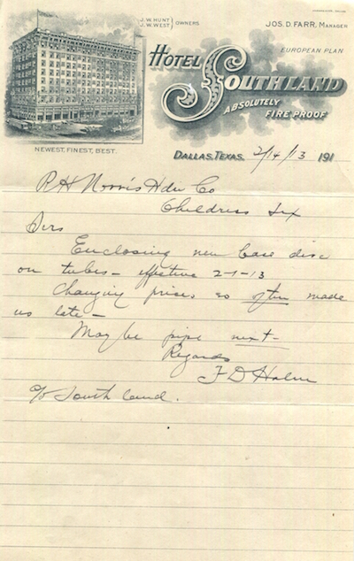 USA Texas Dallas Stationery Hotel Southland 1913