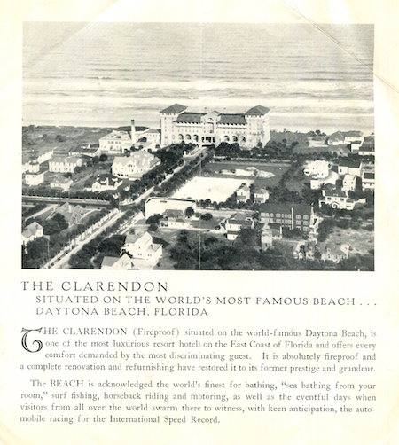 USA Florida Daytona Beach Clarendon Hotel Brochure 1930 Front