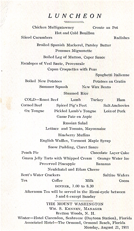 USA Florida Daytona Beach Clarendon Hotel Menu 1911